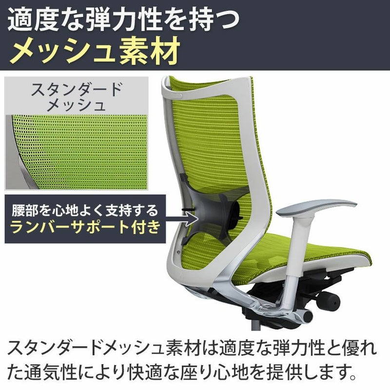 CP85AZ | バロン ハイバック 座メッシュ アジャストアーム ポリッシュフレーム ホワイトボディ ランバーサポート付き オカムラ