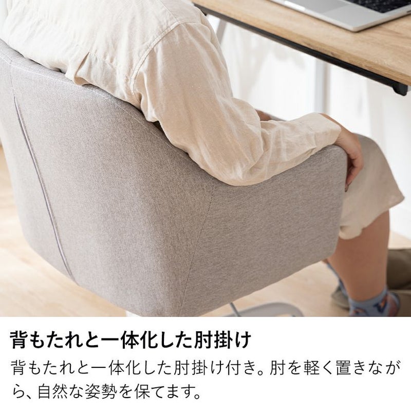 背もたれと一体化した肘掛けが、包み込まれるようなフィット感を生み出します。