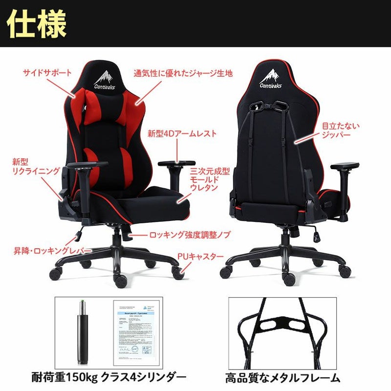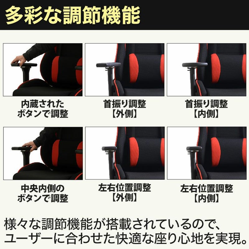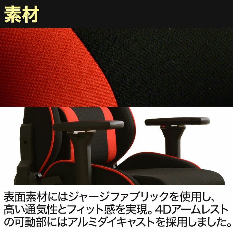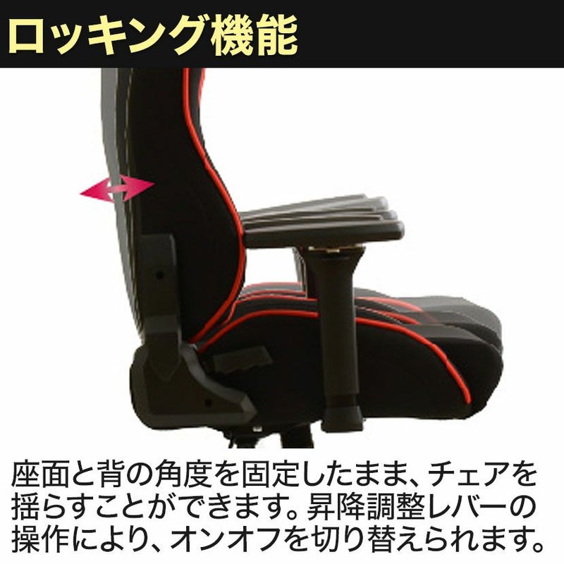 | 機能・特徴 | ・4Dアームレスト 昇降65mm6段階、前後90mm10段階、左右、回転 ・ロッキング機能(強弱調整可能) ・リクライニング機能(160度23段階) ・座面昇降機能 |