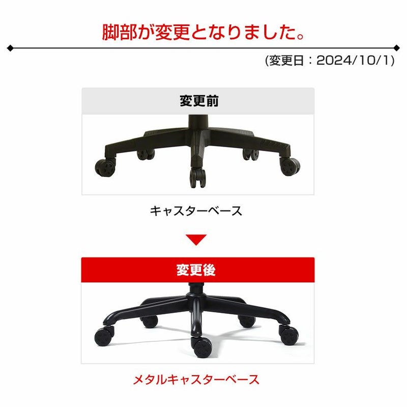 | 変更点 | 脚部 / キャスターベース⇒メタルキャスターベースに変更 (変更日:2024年10月1日) |