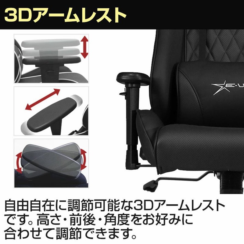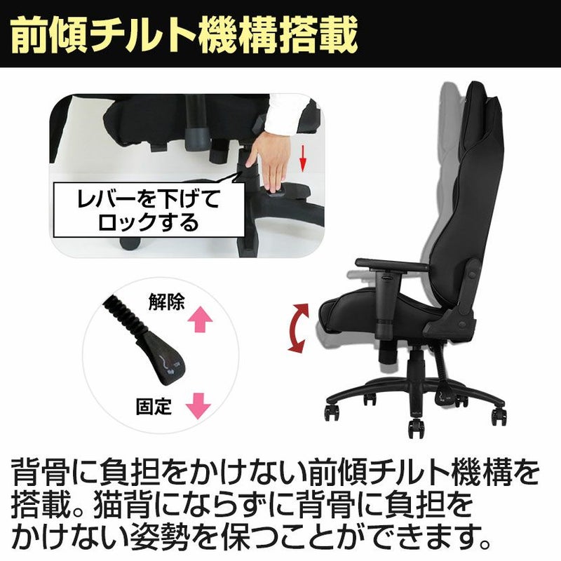 | 機能・特徴 | 座面昇降機能 ロッキング機能 8段階リクライニング(85~155度) 3Dアームレスト(高さ・前後・角度調節可能) 前傾チルト機能(約6度) |