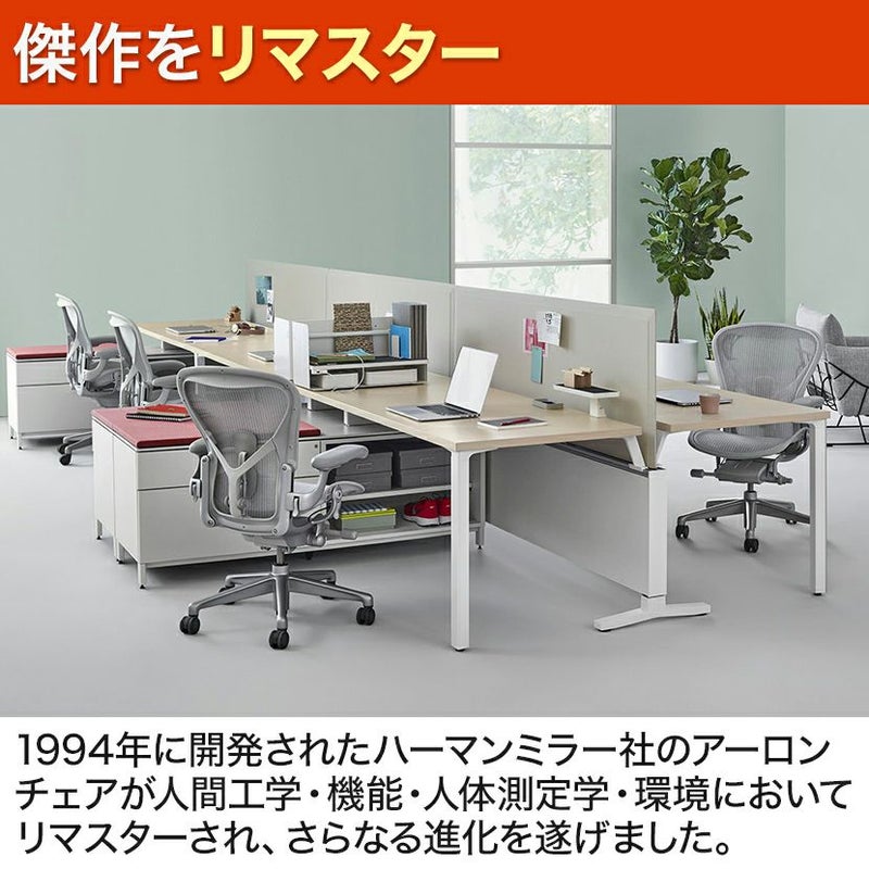 アーロンチェアとは1994年に開発されたハーマンミラー社のオフィスチェアです。当時、素材の革新において先駆的な一歩を踏み出し、ウレタンフォームと布やレザーを使用することなく、快適な座り心地を提供しました。それはオフィスチェアの在り方について考え方を変え、多くの人々から評価を得ました。そして今、現代の仕事をこなす働く人々のために、人間工学・機能・人体測定学・環境においてリマスターされ、さらなる進化を遂げました。