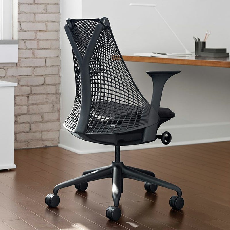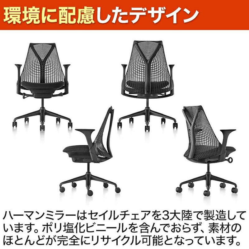 最小限の素材を使用しながら最大限のものを提供する構造を持つ吊り橋にインスピレーションを受けて、デザイナーであるイヴ・ベアールはこの素晴らしい構造の工学原理を適用して、セイルチェアを生み出しました。このワークチェアの「エコ非物質化」のデザインは、より少ない素材をより独創的な方法で使用することで159kgまでの体重を人間工学的にサポートします。ハーマンミラーは製造工場と購入者の距離を縮めるために、セイルチェアを3大陸で製造しています。ポリ塩化ビニールを含んでおらず、素材のほとんどが完全にリサイクル可能となっています。