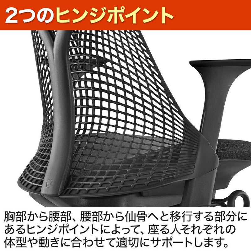 胸部から腰部、腰部から仙骨へと移行する部分にあるヒンジポイントによって、座る人それぞれの体型や動きに合わせて適切にサポート。骨盤を支えるポスチャーフィットも組み込まれています。