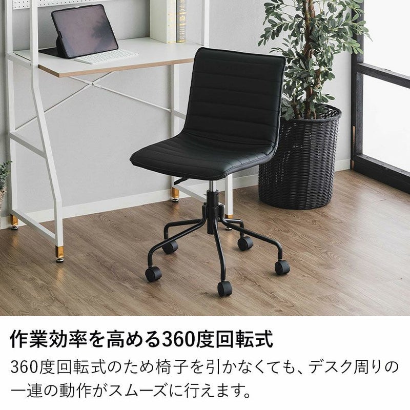 座ったままでくるりと体の向きを変えられる、360度回転式の座面が特徴です。