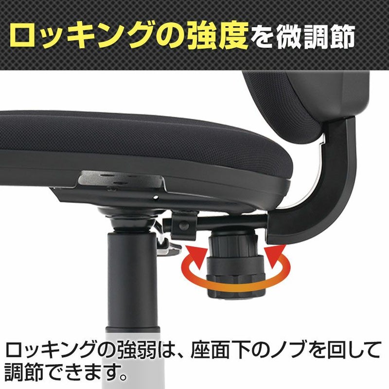 ロッキングの強弱は、座面下のノブを回して調節できます。お好みの反発力に調節することで、心地の良い体勢でリラックスができます。