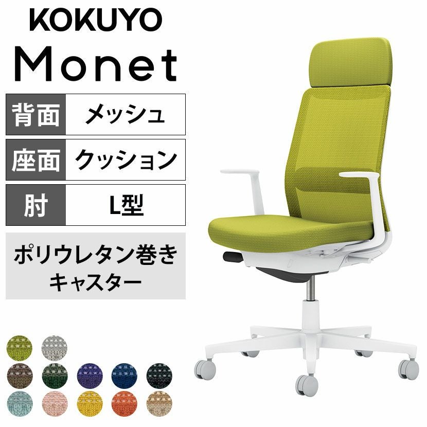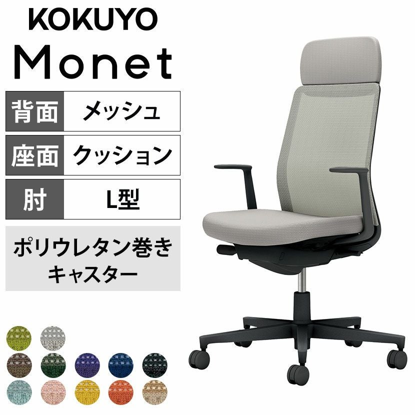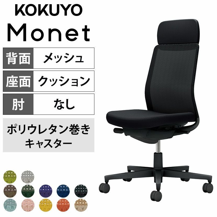他の画像を見る 【設置無料】 ワークチェア モネット Monet オフィスチェア L字肘(固定肘) ハイバック 樹脂脚 ウレタンキャスター ショルダーサポート付き ランバーサポート付き 背メッシュ 座面布張り 背座同色 本体/脚ブラック C03-B113U コクヨ 椅子 送料無料 送料無料 組立設置付き 組立設置付き 日本製 日本製 ¥ 91,500 税込 詳細を見る