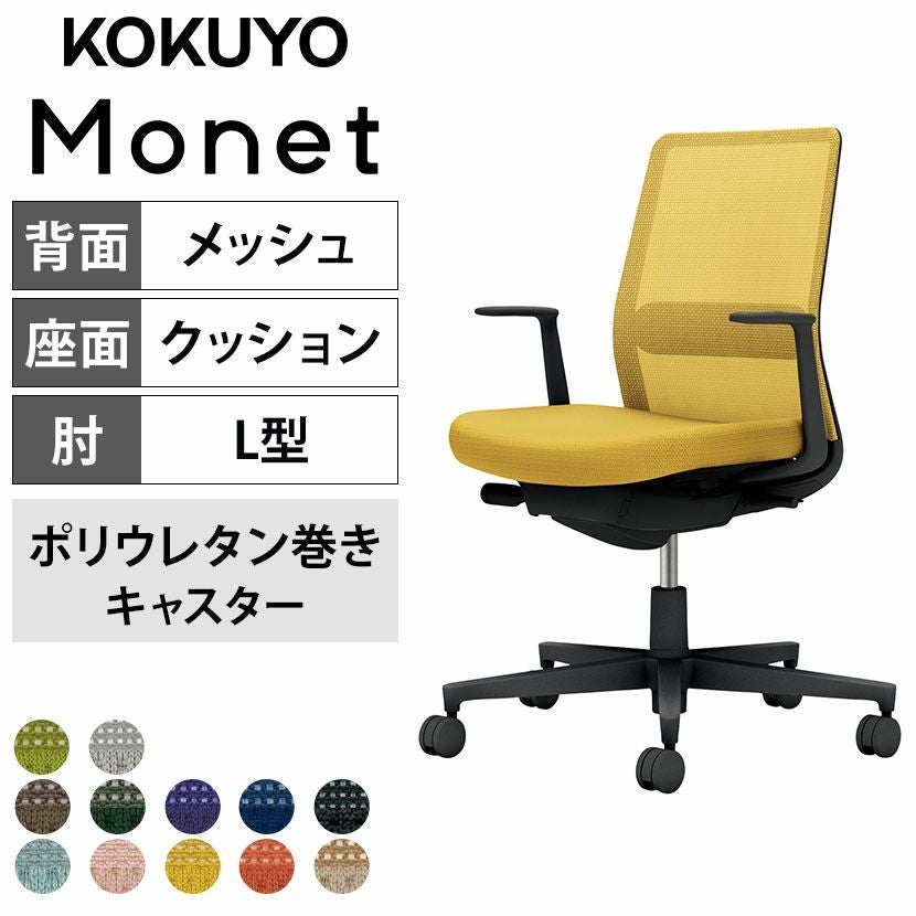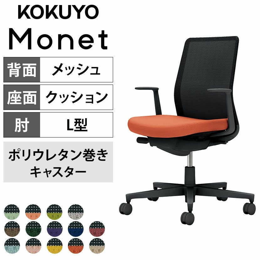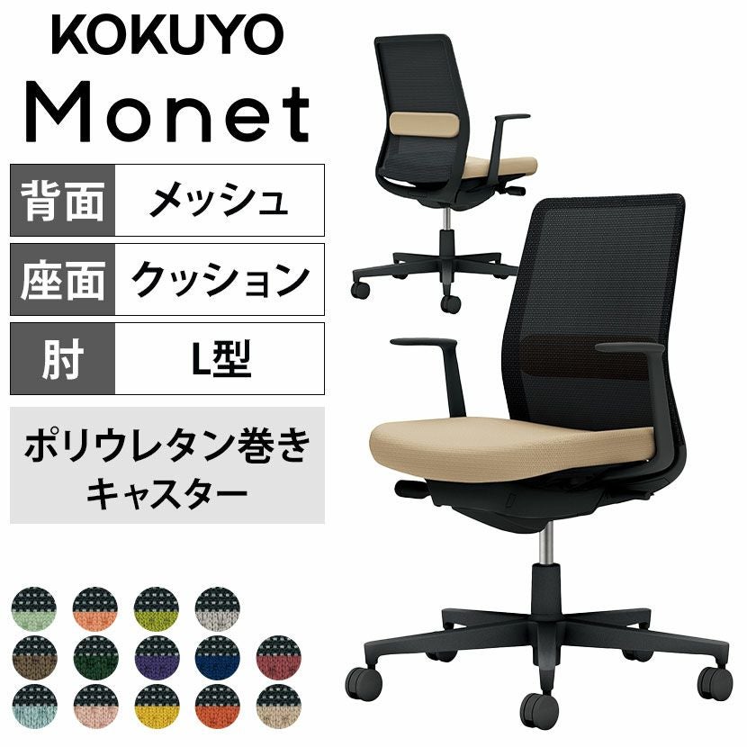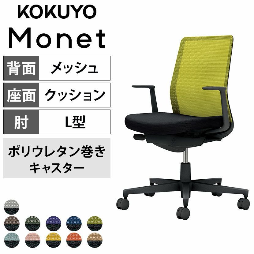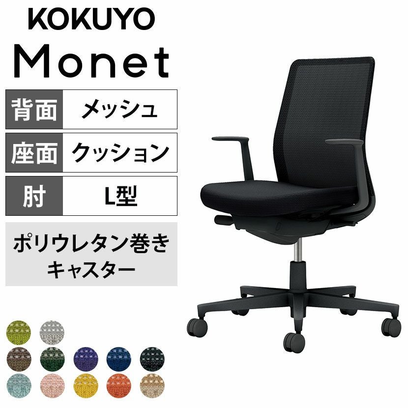 他の画像を見る 【設置無料】 ワークチェア モネット Monet オフィスチェア L字肘(固定肘) 樹脂脚 ウレタンキャスター 背メッシュ 座面布張り 背座別色(座色選択/背ブラック) 本体/脚ブラック C03-B110U コクヨ 椅子 送料無料 送料無料 組立設置付き 組立設置付き 日本製 日本製 ¥ 73,900 税込 詳細を見る