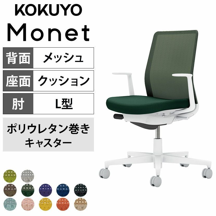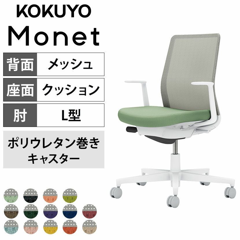 他の画像を見る 【設置無料】 ワークチェア モネット Monet オフィスチェア L字肘(固定肘) 樹脂脚 ウレタンキャスター 背メッシュ 座面布張り 背座別色(背色選択/座ブラック) 本体/脚ブラック C03-B110U コクヨ 椅子 送料無料 送料無料 組立設置付き 組立設置付き 日本製 日本製 ¥ 73,900 税込 詳細を見る
