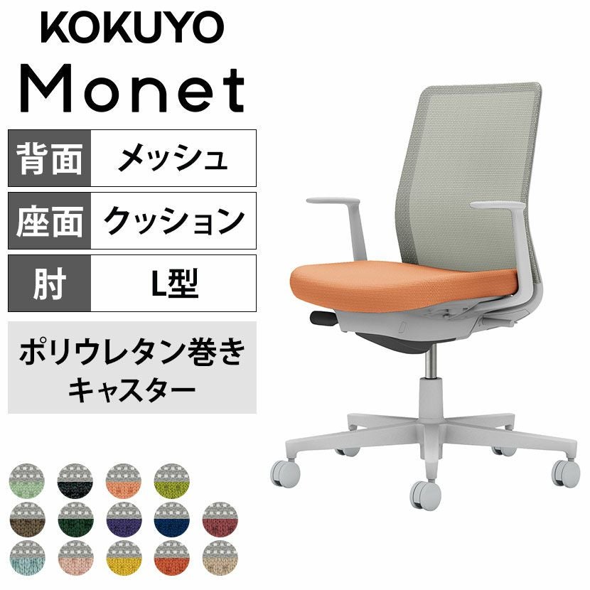 他の画像を見る 【設置無料】 ワークチェア モネット Monet オフィスチェア L字肘(固定肘) 樹脂脚 ウレタンキャスター 背メッシュ 座面布張り 背座別色(座色選択/背ライトグレー) 本体/脚ライトグレー C03-G110U コクヨ 椅子 送料無料 送料無料 組立設置付き 組立設置付き 日本製 日本製 ¥ 73,900 税込 詳細を見る