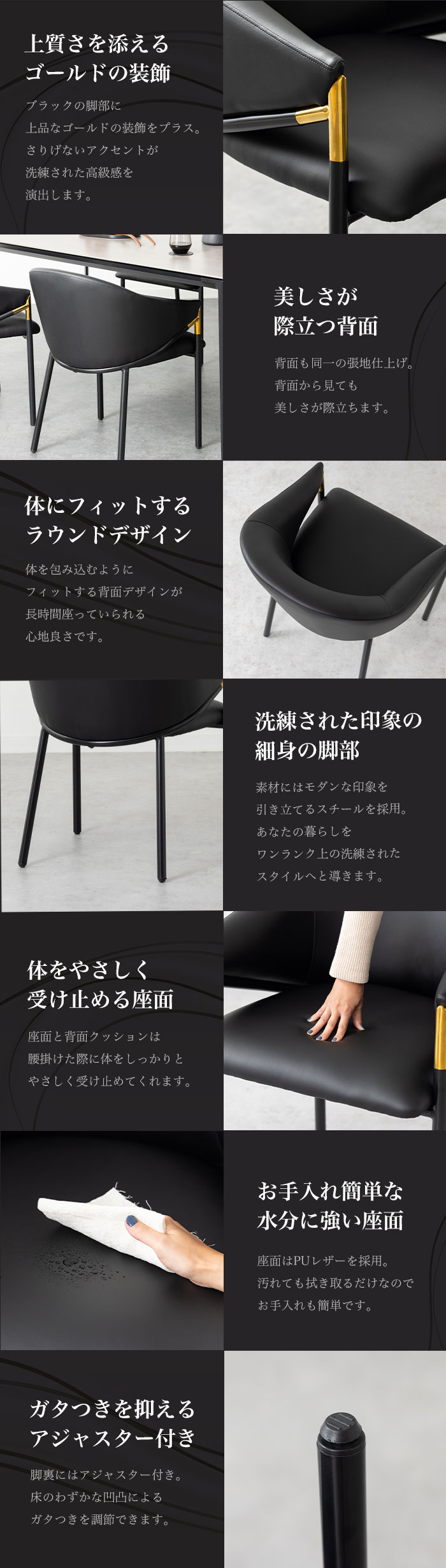 脚部には一部ゴールドの装飾部分があり、シンプルさとエレガントさを両立させています。