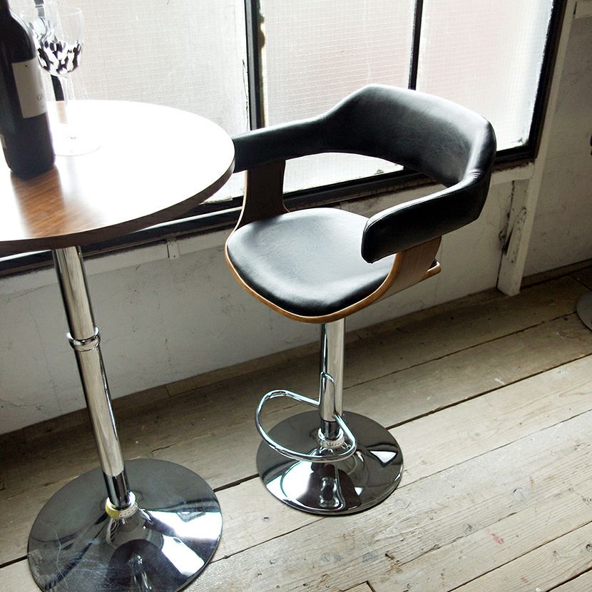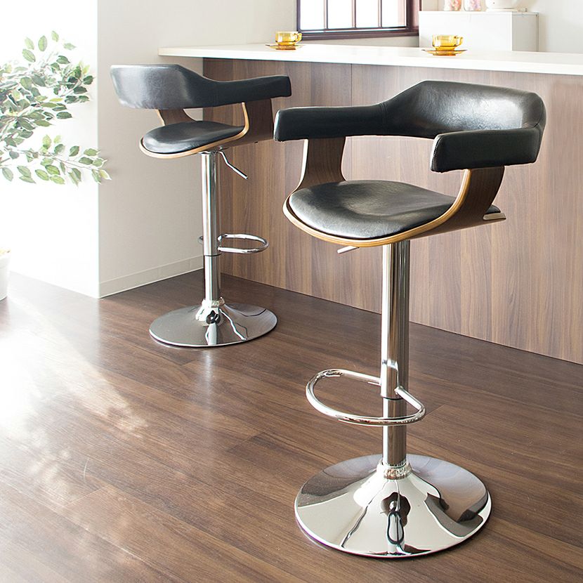 カウンターチェア 昇降式 回転式 フットレスト付き 肘付き 合皮 バーチェア ラウンドチェア ハイチェア おしゃれ かっこいい モダン 黒 ブラック ブラウン