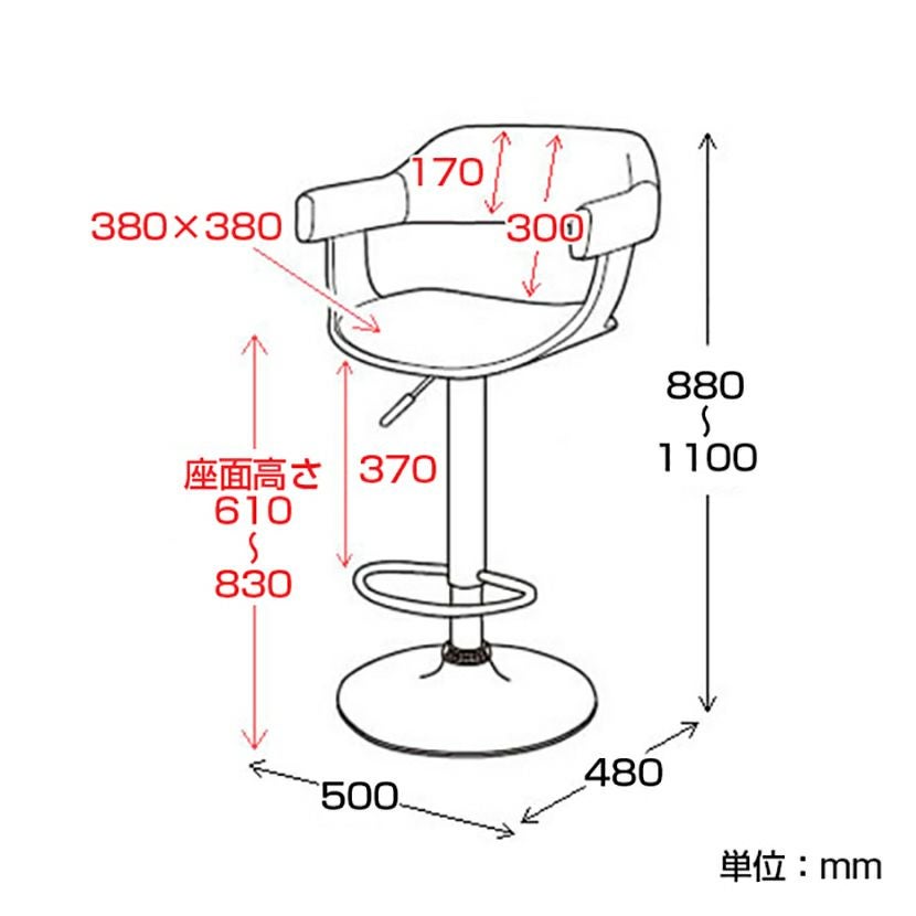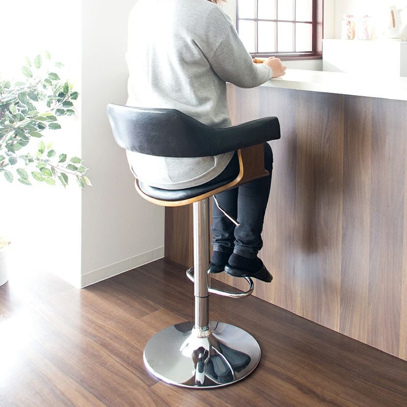 バースツール 背もたれ付 足置き付 昇降式 360度回転 カウンターチェア ハイチェア