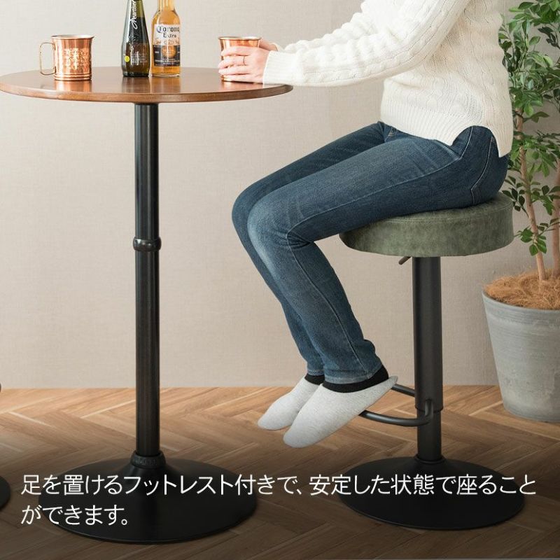 ●座面下のレバーを引くだけで、使うカウンターテーブルに合わせて無段階の高さ調節ができます。