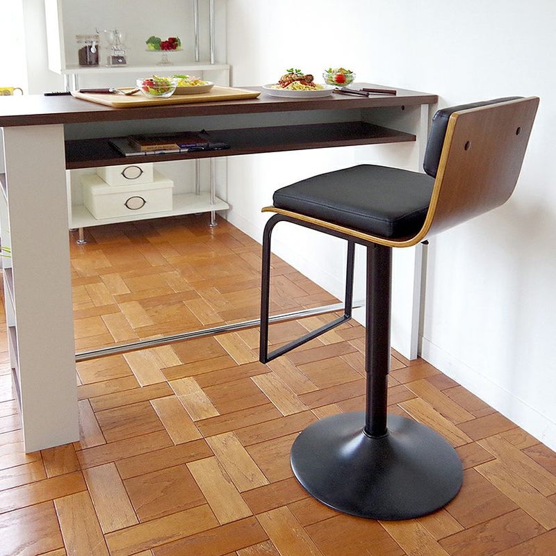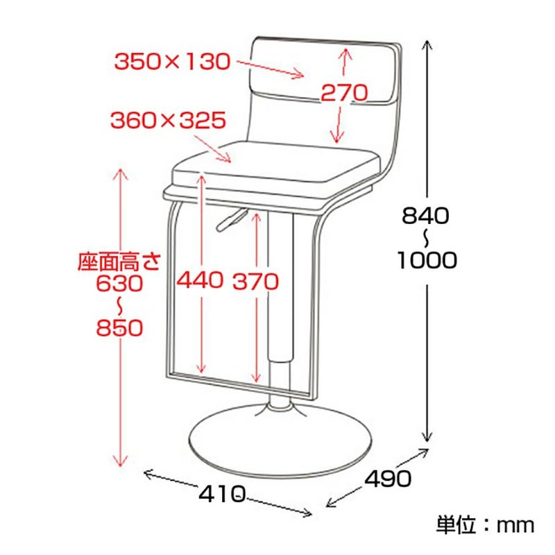 ガス圧式のレバーで座面の高さを簡単に調節可能。カウンターテーブルやバーカウンターに合わせて快適に使用できます。