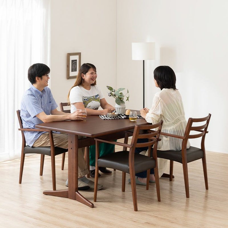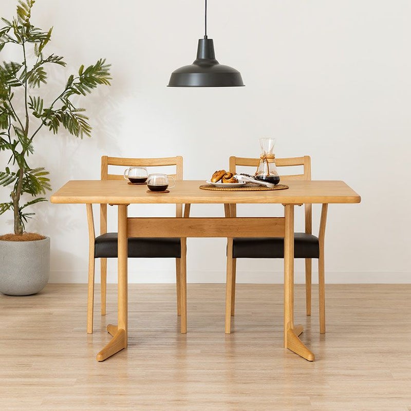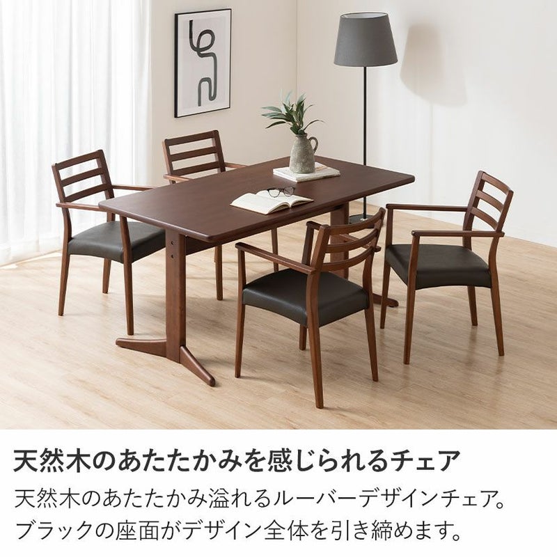 チェアのフレームは木のあたたかみを感じる天然木。背面のルーバーデザインが軽やかさをプラスします。