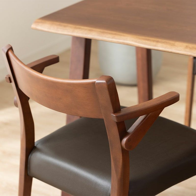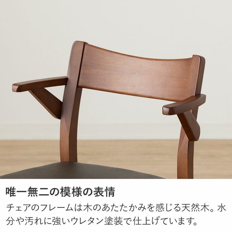 チェアのフレームは木のあたたかみを感じる天然木。水分や汚れに強いウレタン塗装で仕上げています。