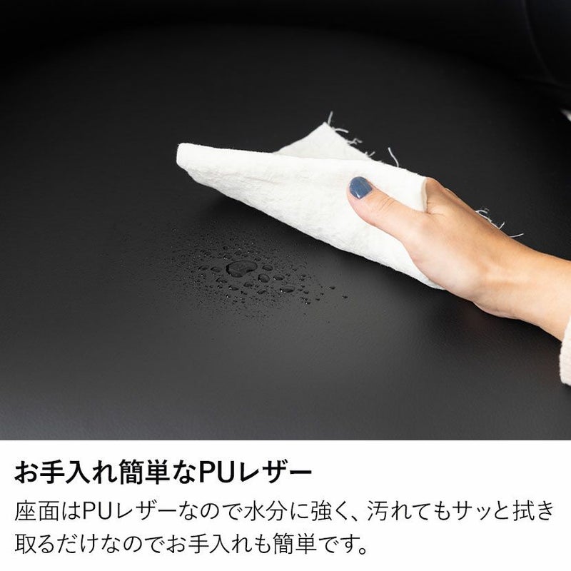 座面はPUレザーなので水分に強く、汚れてもサッと拭き取るだけなのでお手入れも簡単です。