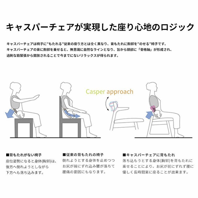 座ると自然な骨格ラインになるので、不要な力が抜けてリラックスでき、長時間座っても疲れにくいです。
