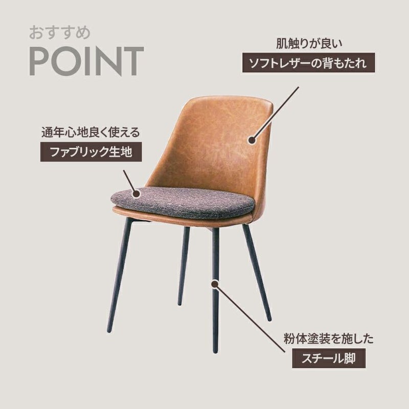 背もたれはソフトレザー、座面はファブリックを採用。