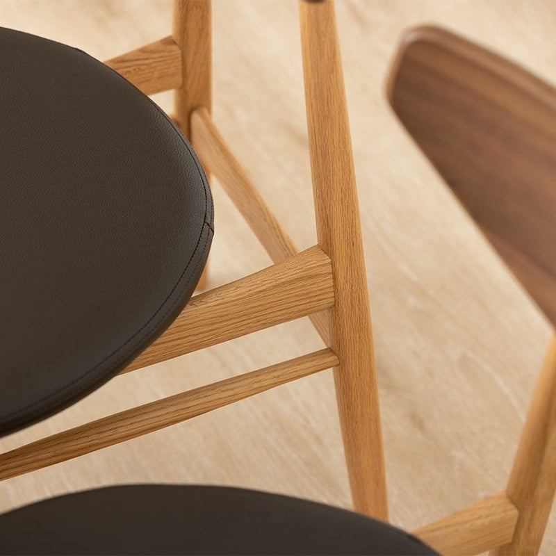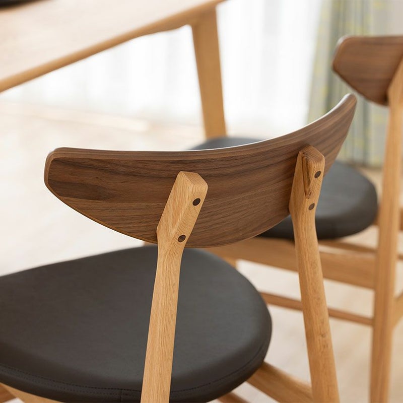 ウォールナットの背もたれとオークのフレームを組み合わせたツートン仕様のダイニングチェアです。