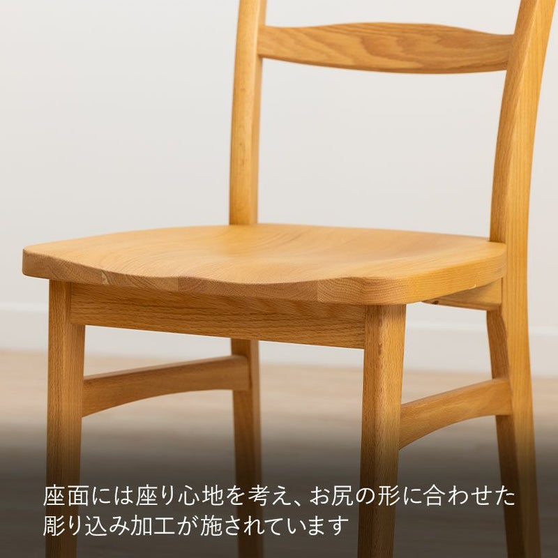 ●背板には曲木R350を、板座には座彫りを施し、身体へのストレス を最小限に抑える技術が詰まっています。