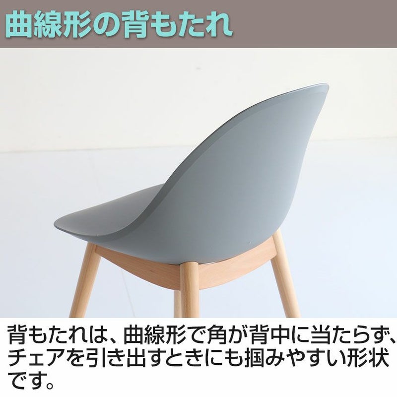 ・曲線形の背もたれは角が背中に当たらず、チェアを引き出す時にも掴みやすい形状です。