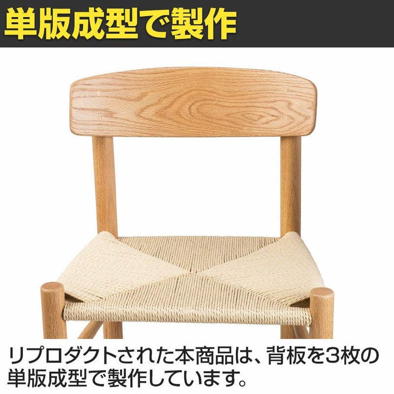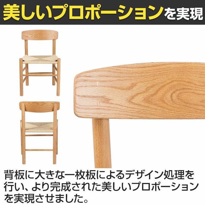 ・シェーカー様式の特徴は、細い背板がラダー状に(梯子のように)なっており、ボーエ・モーエンセンはこれを大きな一枚板によるデザイン処理を行い、より完成された美しいプロポーションを実現させました。