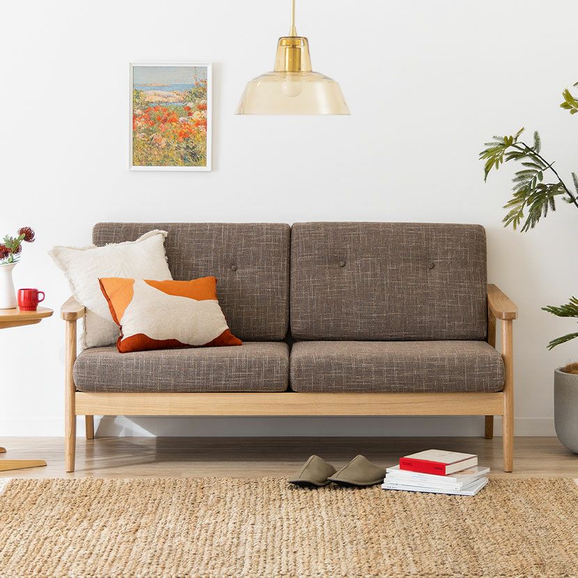 他の画像を見る 【設置無料】幅167cm 2人掛け ソファ バッスム 布 天然木 木製 肘付き アッシュ材 クッション取り外し可 北欧 カフェ風 ナチュラル 椅子 ブルー グリーン ブラウン 送料無料 送料無料 開梱設置付き 開梱設置付き ¥ 119,900 税込 カートに入れる