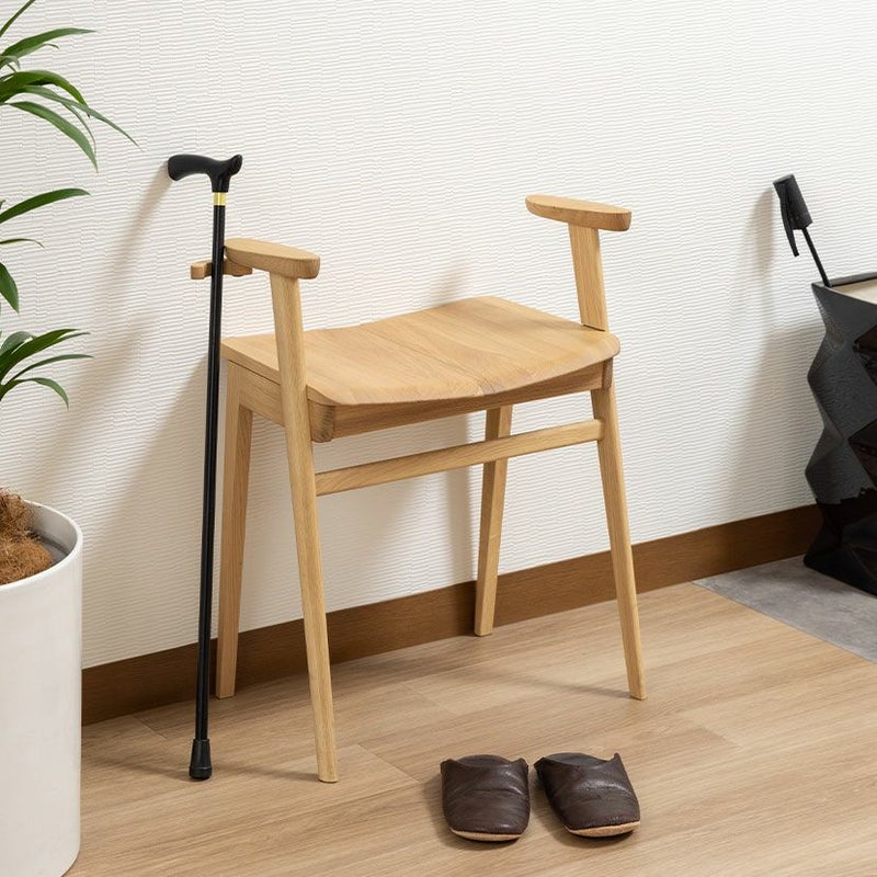 【カリモク】肘付き スツール 日本製 木製 天然木 オーク材 ステッキホルダー付き 補助椅子 木製椅子 玄関椅子 おしゃれ リビング 玄関 北欧 ナチュラル 完成品 karimoku CU1117