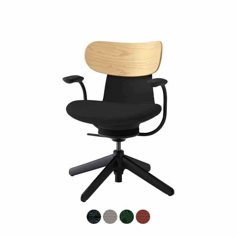 オフィスチェア NAチェア コンパクト 天然木 上下昇降 モールドウレタン ハンドル付き 回転 デスクチェア 会議椅子