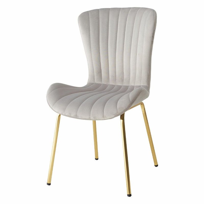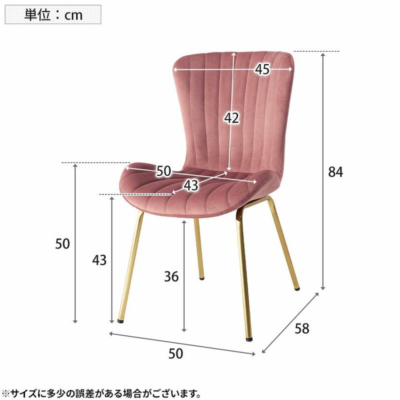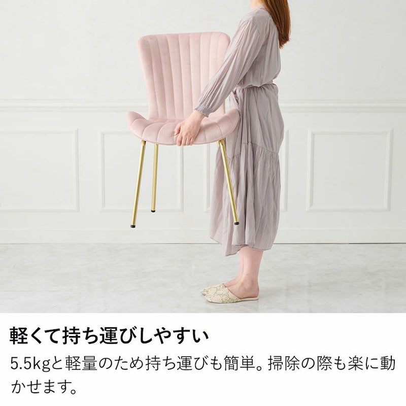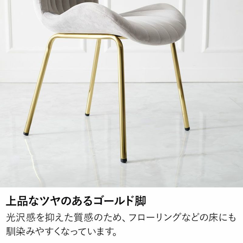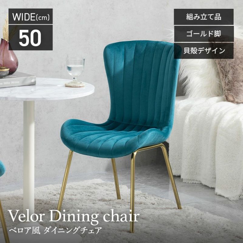 貝殻のようなシルエットにゴールドの脚がエレガントな、ベロア風生地のダイニングチェアです。