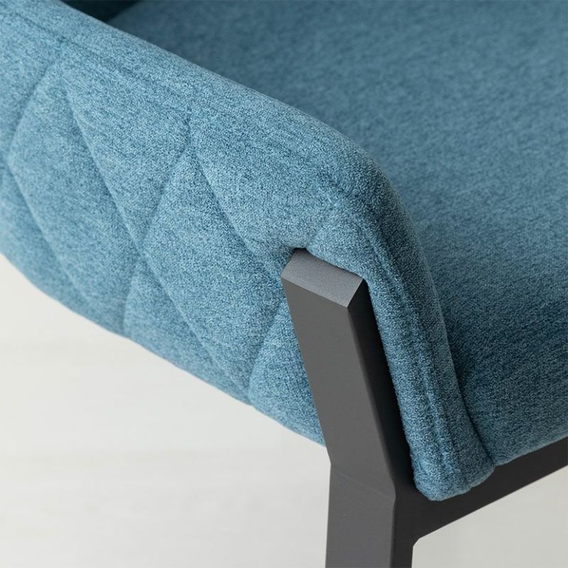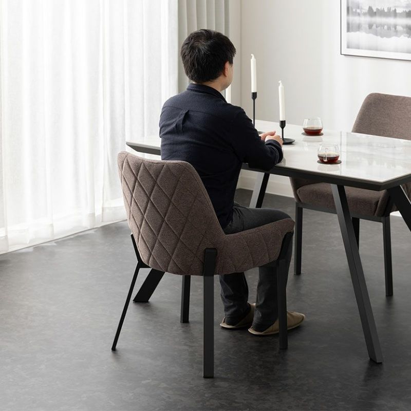 年中快適なファブリック生地年中サラっと使えるファブリック生地。夏場や冬のエアコンの効いた部屋でも快適にお使いいただけます。ダイヤモンド柄のキルト背面にダイヤモンド柄を入れることで、シンプルながらもデザイン性の高いチェアになっています。フィット感に優れたバケット式構造ぐるりと身体を受け止めるカーブを描き、包み込まれるような座り心地です。手や腕をやさしく支えるアーム身体の力を抜いて、ゆったりもたれることができるので、くつろぎ度がアップします。デザインにワンポイント斜めラインの後ろ脚がスタイリッシュな印象を与え、デザイン性を高めています。