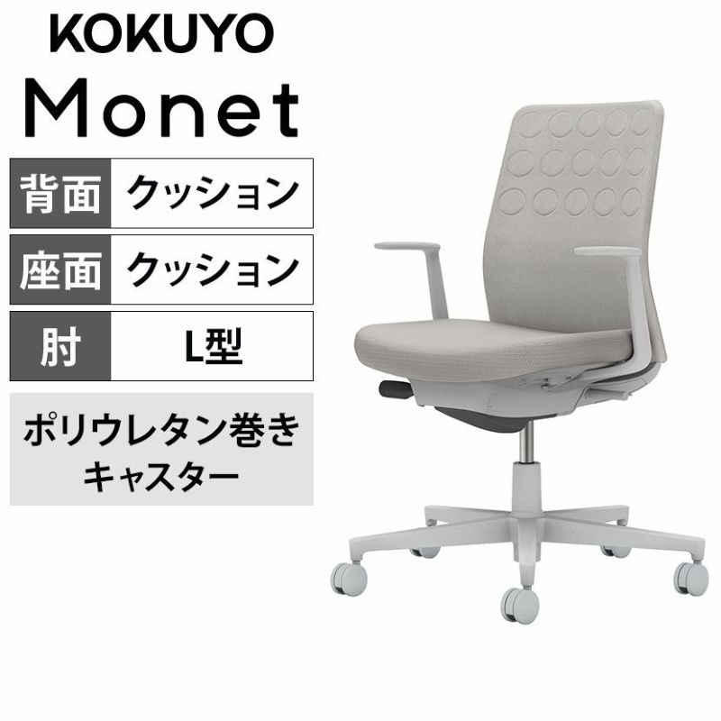 【設置無料】オフィスチェア モネット Monet 背クッションタイプ 背座同色 L型肘 ショルダーサポートなし ランバーサポートなし 脚ライトグレー 本体ライトグレー 背ライトグレー 座ライトグレー ポリウレタン巻きキャスター C03-G210U-GE2E2X1 | コクヨ オフィスチェア