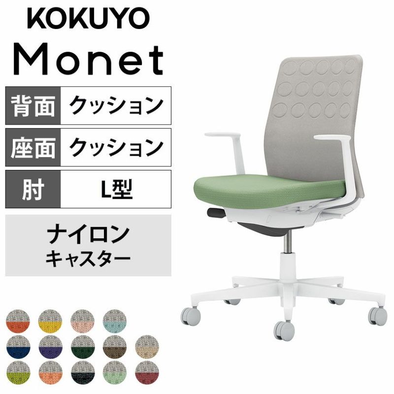 【設置無料】オフィスチェア モネット Monet 背クッションタイプ 背座別色 座色選択タイプ L型肘 ショルダーサポートなし ランバーサポートなし 脚ホワイトグレー 本体ホワイトグレー 背ライトグレー ナイロンキャスター C03-W210W | コクヨ オフィスチェア