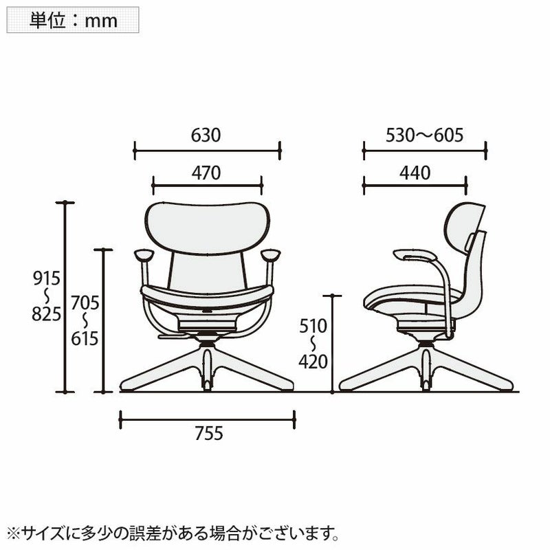 | サイズ(その他) | 肘高さ / 615~705mm 座面 / 幅470×奥行440mm 座面高さ / 420~510mm |