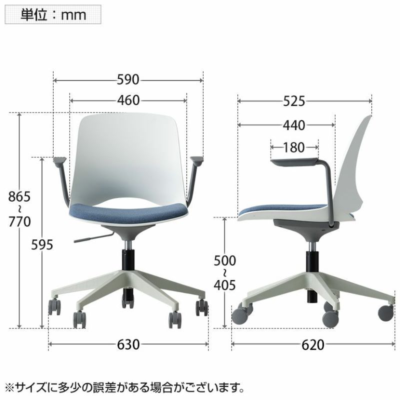 チェア全体のシルエットに合わせて、やや短めにデザインされた固定肘。