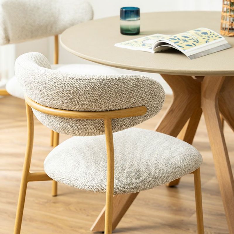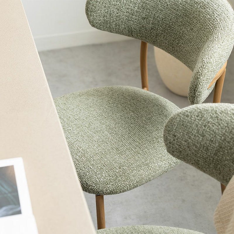 丸みのあるかわいらしいフォルムと使いやすいファブリック生地が魅力のダイニングチェアです。