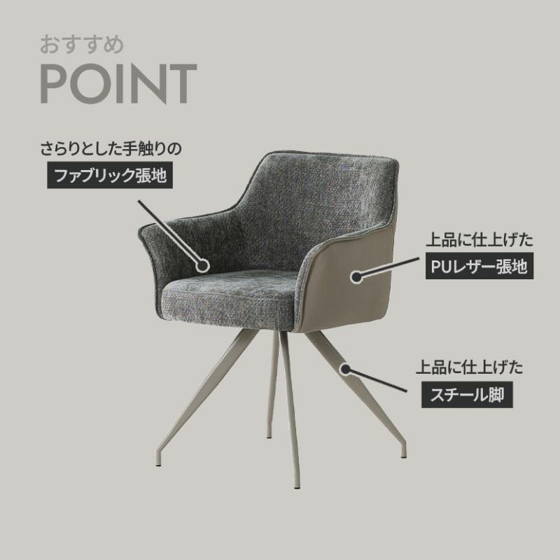 チェアの外側をPUレザーで覆うことで、デザインにメリハリが生まれ、引き締まった印象を与えます。