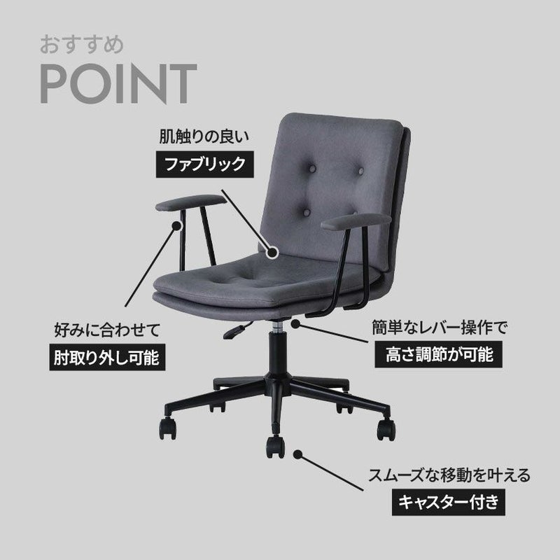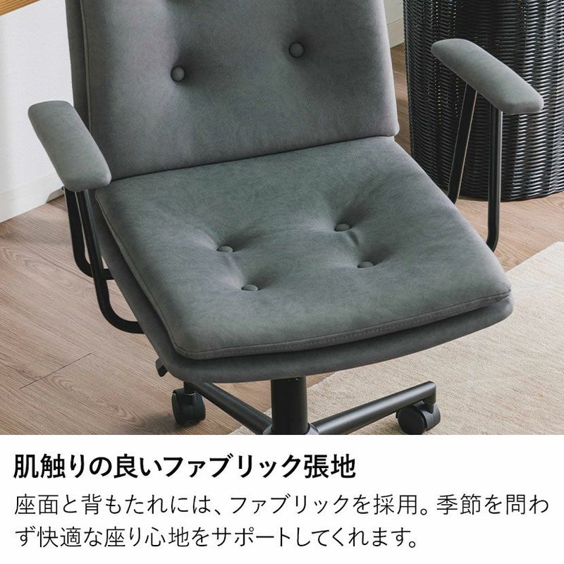 ファブリックで張地のため肌触りも良く、長時間のデスクワークにおける腕の負担を軽減してくれます。
