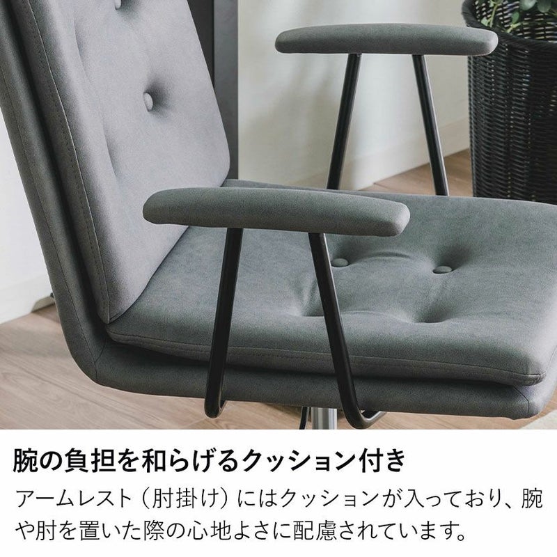 アームレスト(肘掛け)にはクッションが入っており、腕や肘を置いた際の心地よさに配慮されています。