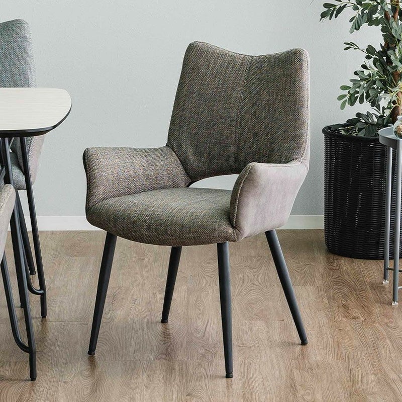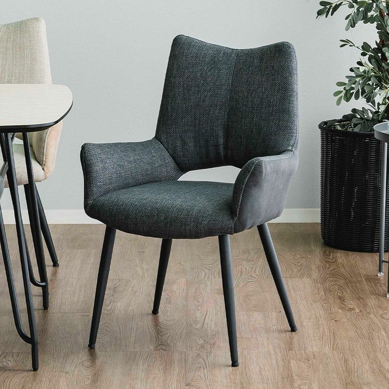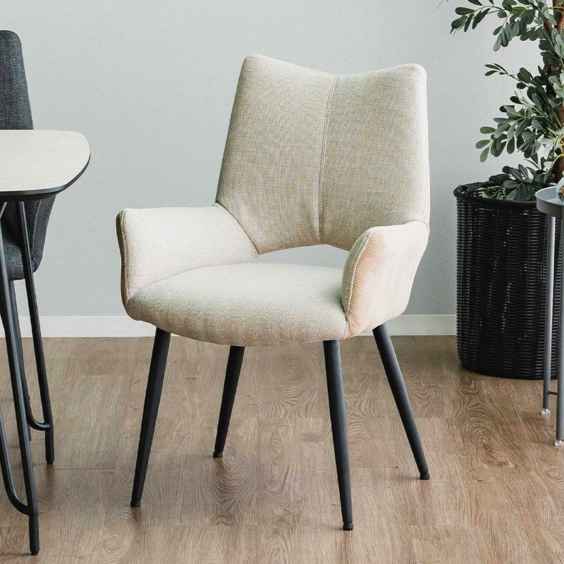 ダイニングチェア 肘付き ファブリック 食卓椅子 スチール脚 シンプル ホテルライク風 オシャレ ベージュ グレー ブラック ブラウン