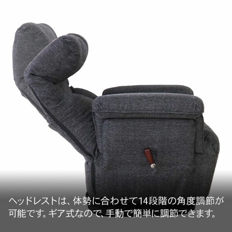 ●座面横のレバーを引いて背もたれに体重をかけるだけで、無段階リクライニングが可能です。