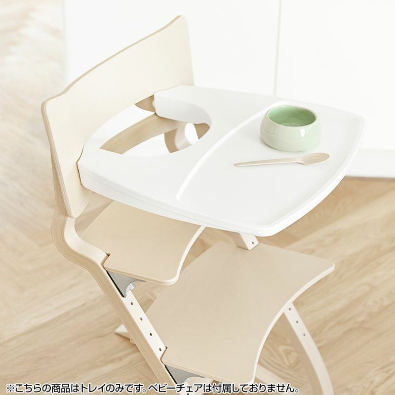 ●リエンダーハイチェアにぴたりとフィットするお子さま専用トレーテーブルです。(取り付けにはセーフティーバー(別売り)が必要です)