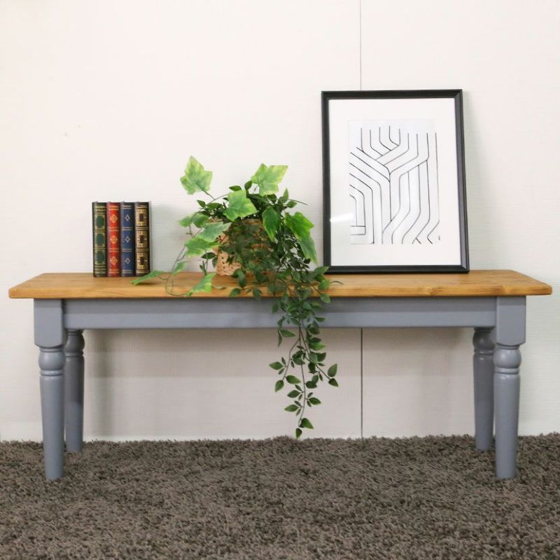 バイカラーデザインが特徴のダイニングベンチ。