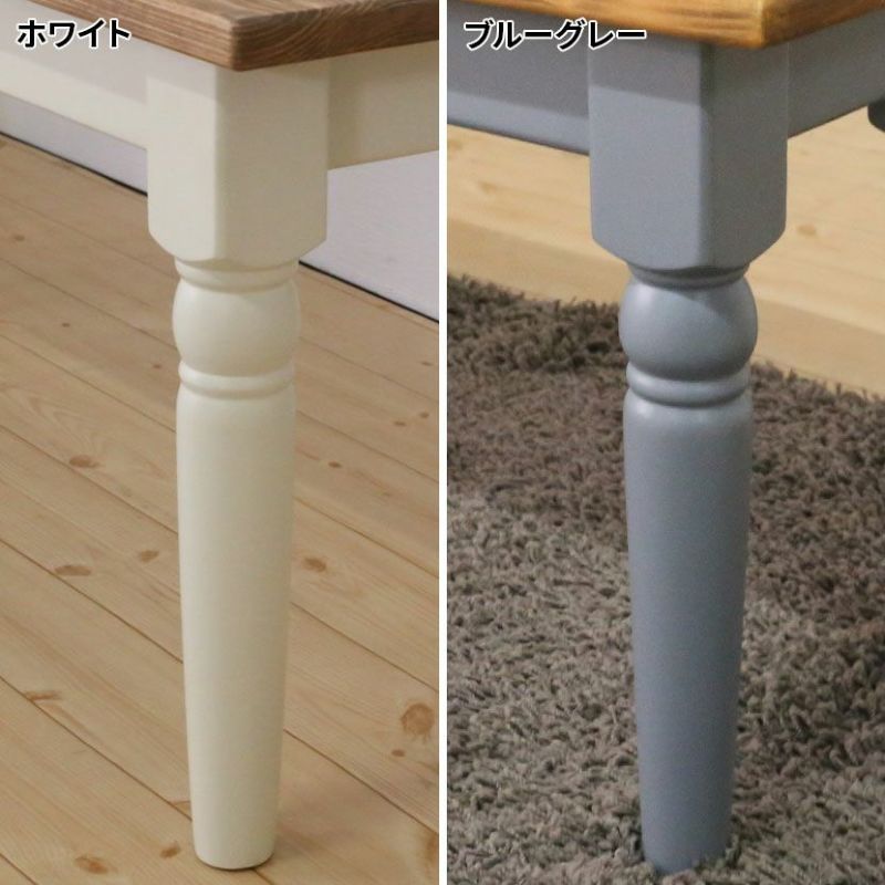 バイカラーが特徴のフレンチカントリーシリーズ、 ラベンダー。丸みを帯びたフォルムにアンティーク調の取っ手と細部にまでこだわり製作しています。パイン無垢材に素朴で淡いホワイト色の組合わせは、温かみのある優しいフレンチダイニング空間を演出してくれます。ラベンダーに近いブルーグレー色は、シックで甘すぎない高級感が漂うダイニング空間を演出してくれます。