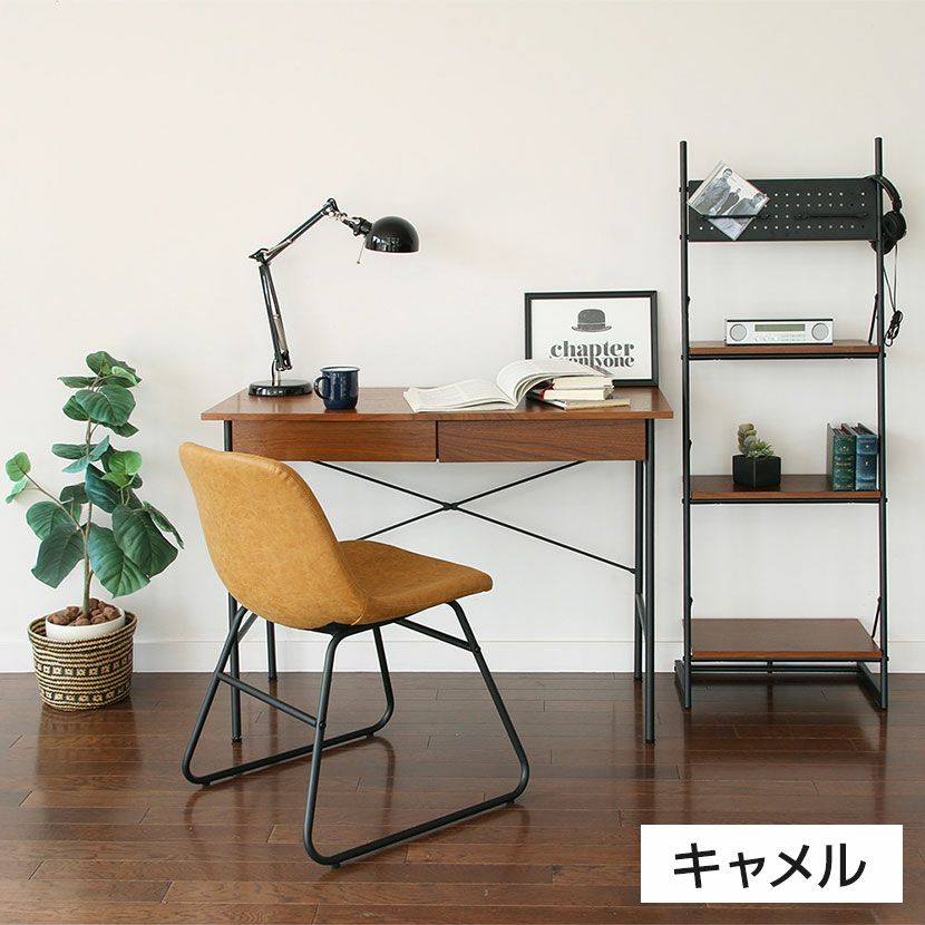 デスクチェア Vino 肘なし スチール脚 PUレザー 合皮 椅子 アームレスチェア ダイニングチェア おしゃれ ヴィンテージ風 テレワーク 在宅 キャメル ブラウン