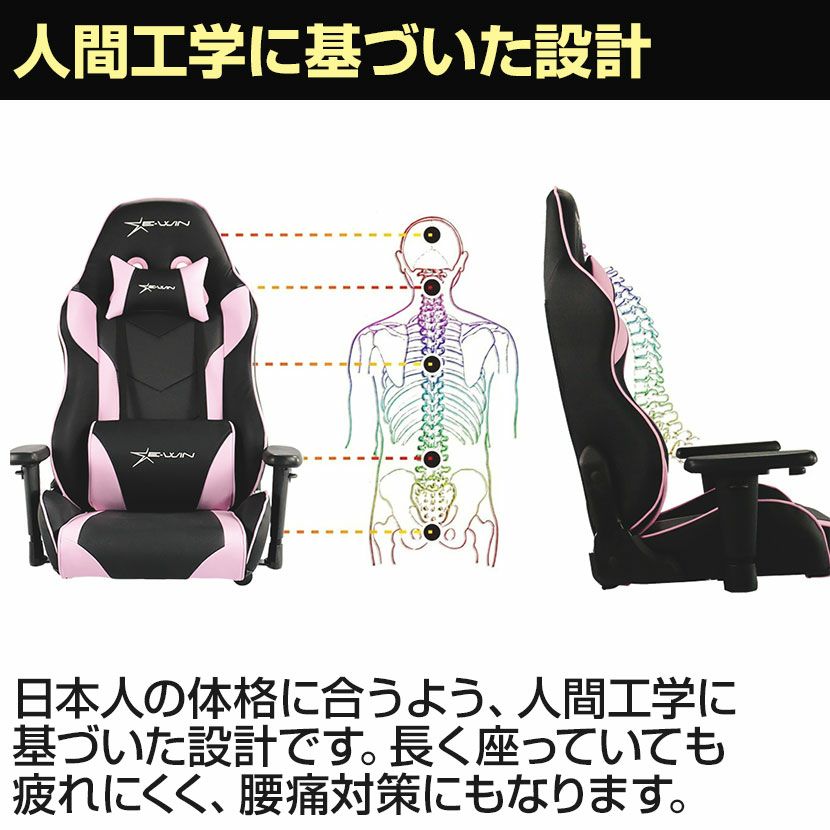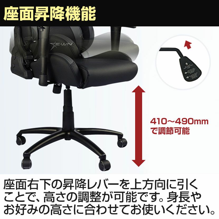 ゲーミングチェア E-WIN PUレザー 高反発ウレタン採用 リクライニング ロッキング機能 低座面設計 椅子 デスクチェア レザーチェア