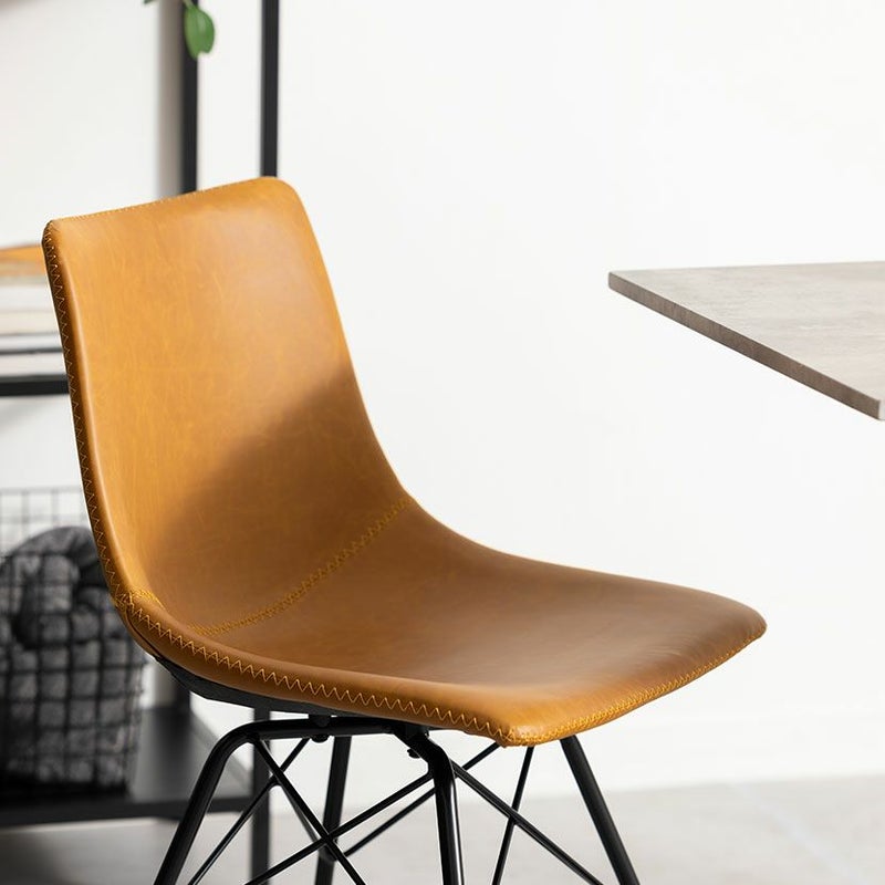 まるで本物のレザーのような質感のPVCレザーとスチール脚の組み合わせがモダンなダイニングチェアです。