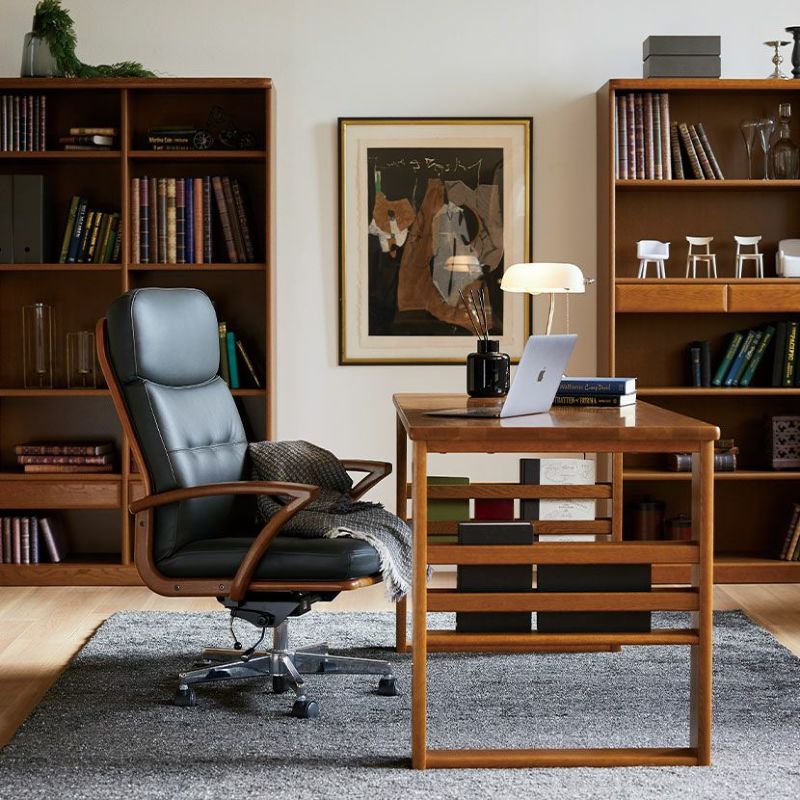 曲木によって作られた肘形状が印象的な書斎椅子。